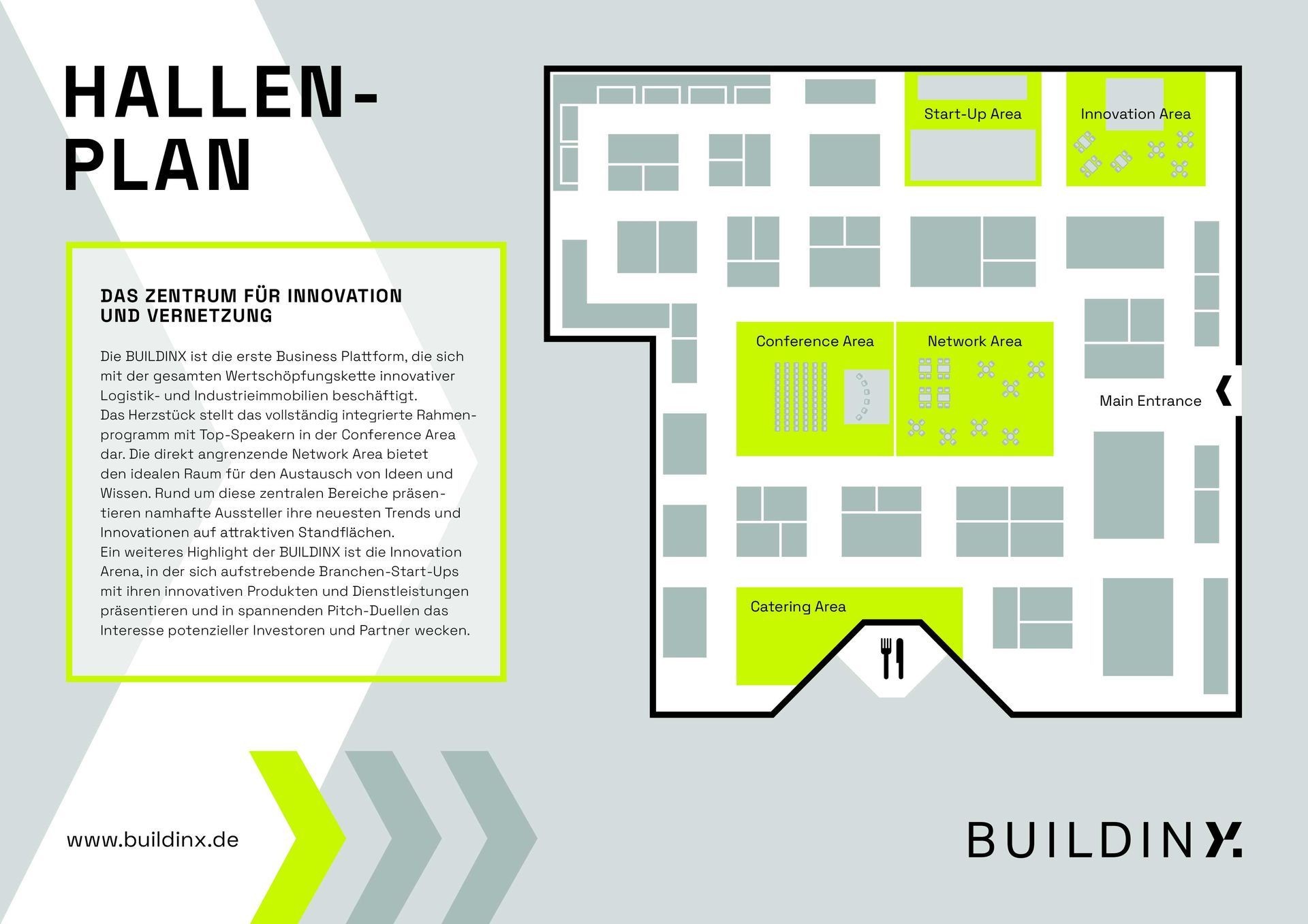 Die BUILDINX ist die erste Business-Plattform, die die gesamte Wertschöpfungskette innovativer Logistik- und Industrieimmobilien abbildet. Das Rahmenprogramm kombiniert Fachkonferenz, Networking und Präsentationen von renommierten Branchenexpert:innen, Marktführenden und aufstrebenden Start-ups.